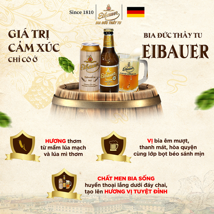 ✨[BIA ĐỨC_SINCE 1810] Combo 2 Thùng Bia Tươi Thầy Tu EIBAUER HEFEWEIZEN HELL 5.2 ĐỘ - Bia Tươi Men Sống Thượng Hạng - Nhập Khẩu Chính Hãng
