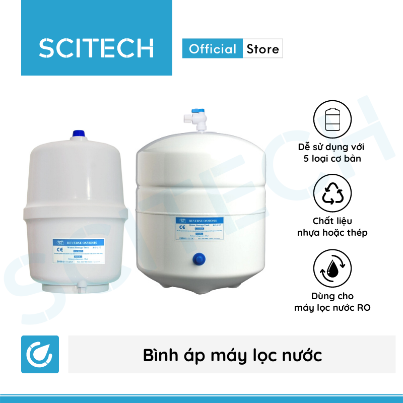 Bình áp máy lọc nước được làm bằng thép hoặc thép bọc nhựa bền bỉ, an toàn với dung tích tương ứng 8L hoặc 10L có chức năng chứa nước sạch trong hệ thống máy lọc nước RO. Bình áp có thiết kế nhỏ gọn, thích hợp lắp đặt trong gầm bếp hay tích hợp trong tủ máy lọc nước.