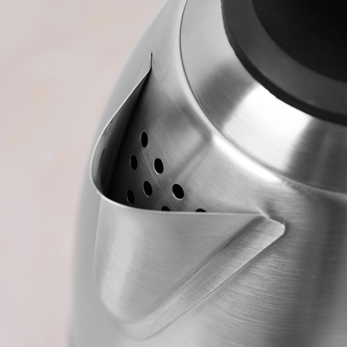 Thiết kế màu sắc bắt mắt tô điểm thêm không gian bếp.  Thân ấm siêu tốc làm bằng thép không gỉ cao cấp, sáng bóng, không xỉn màu.  Tay cầm được bọc lớp nhựa chịu