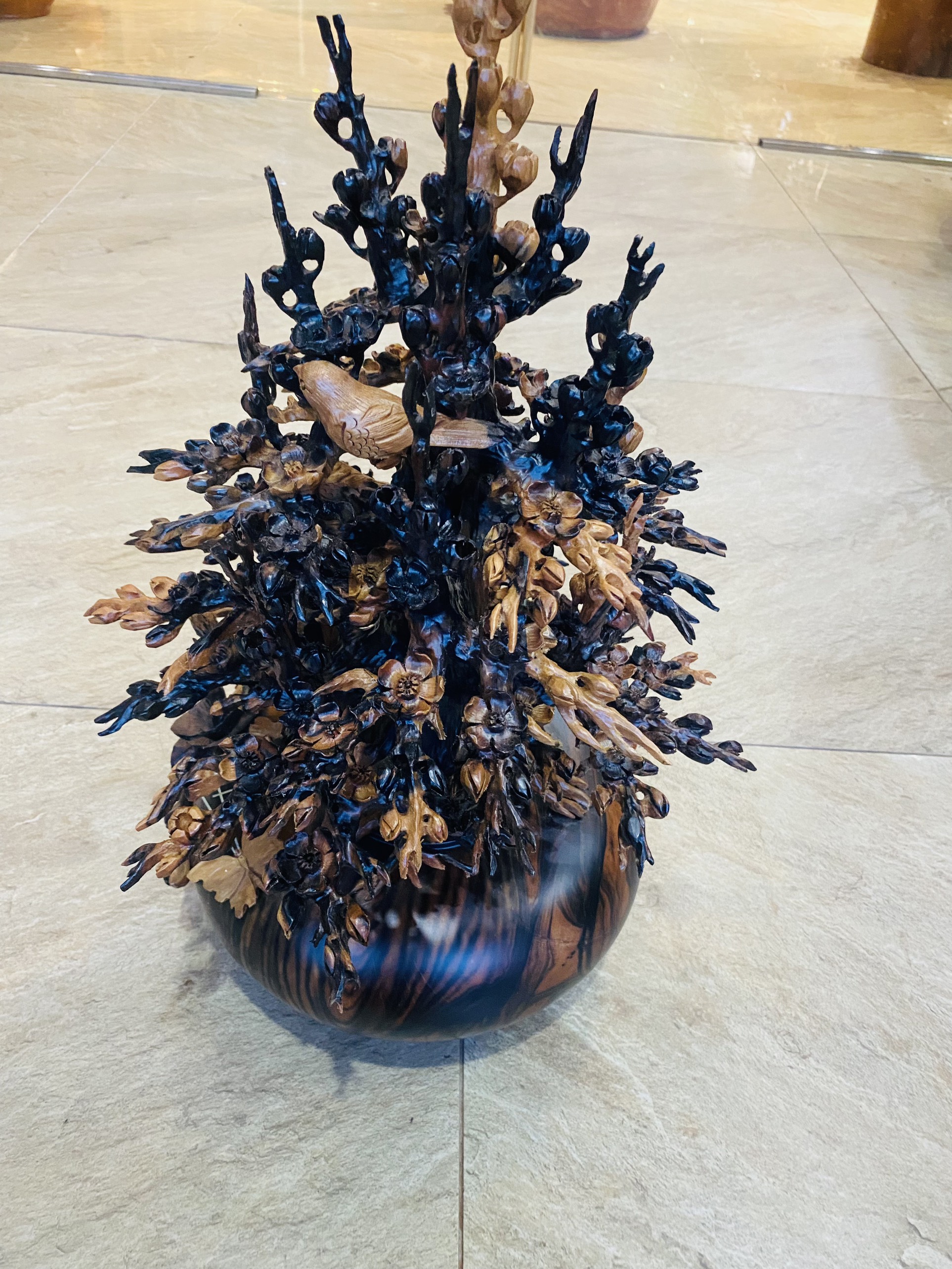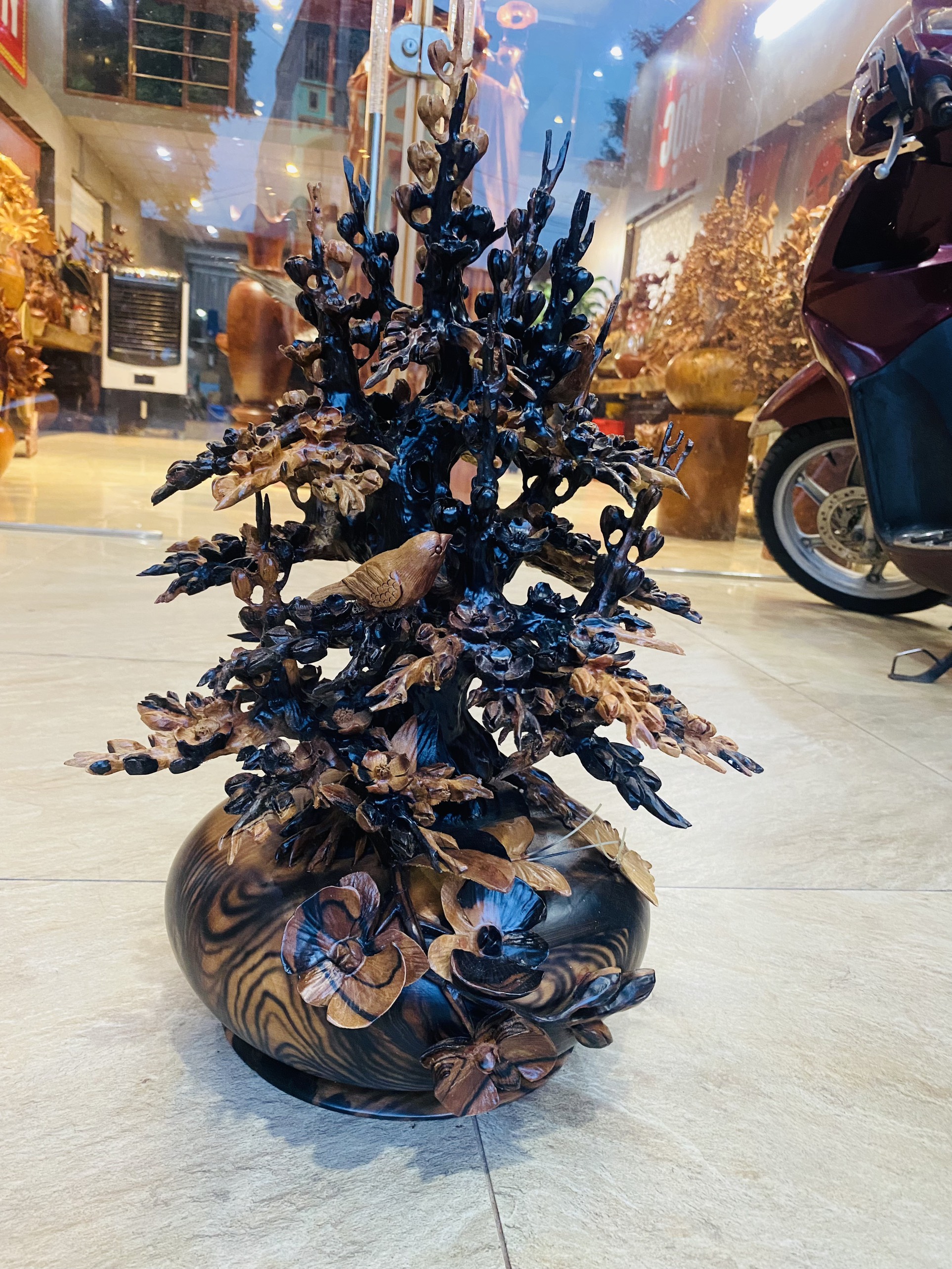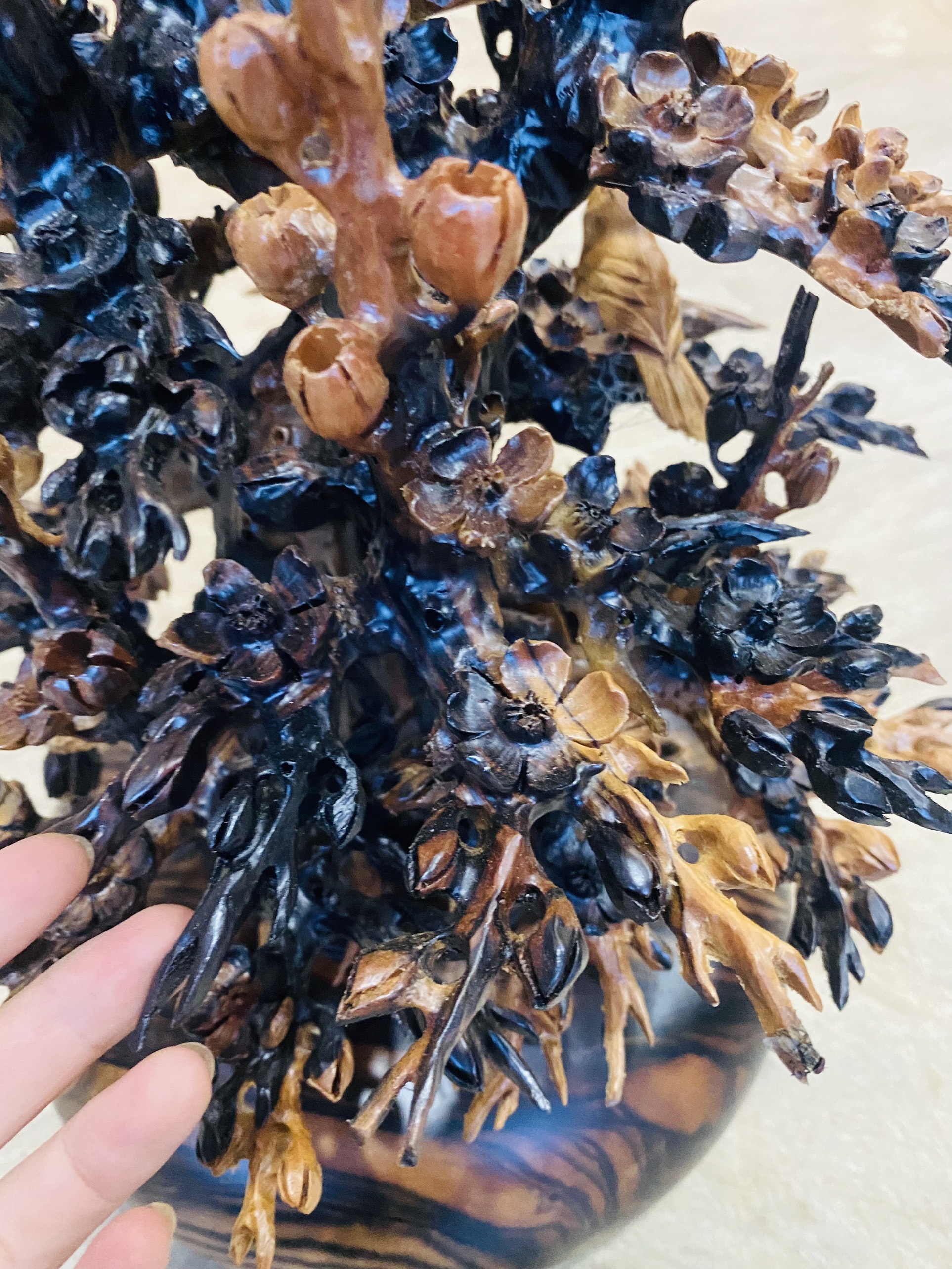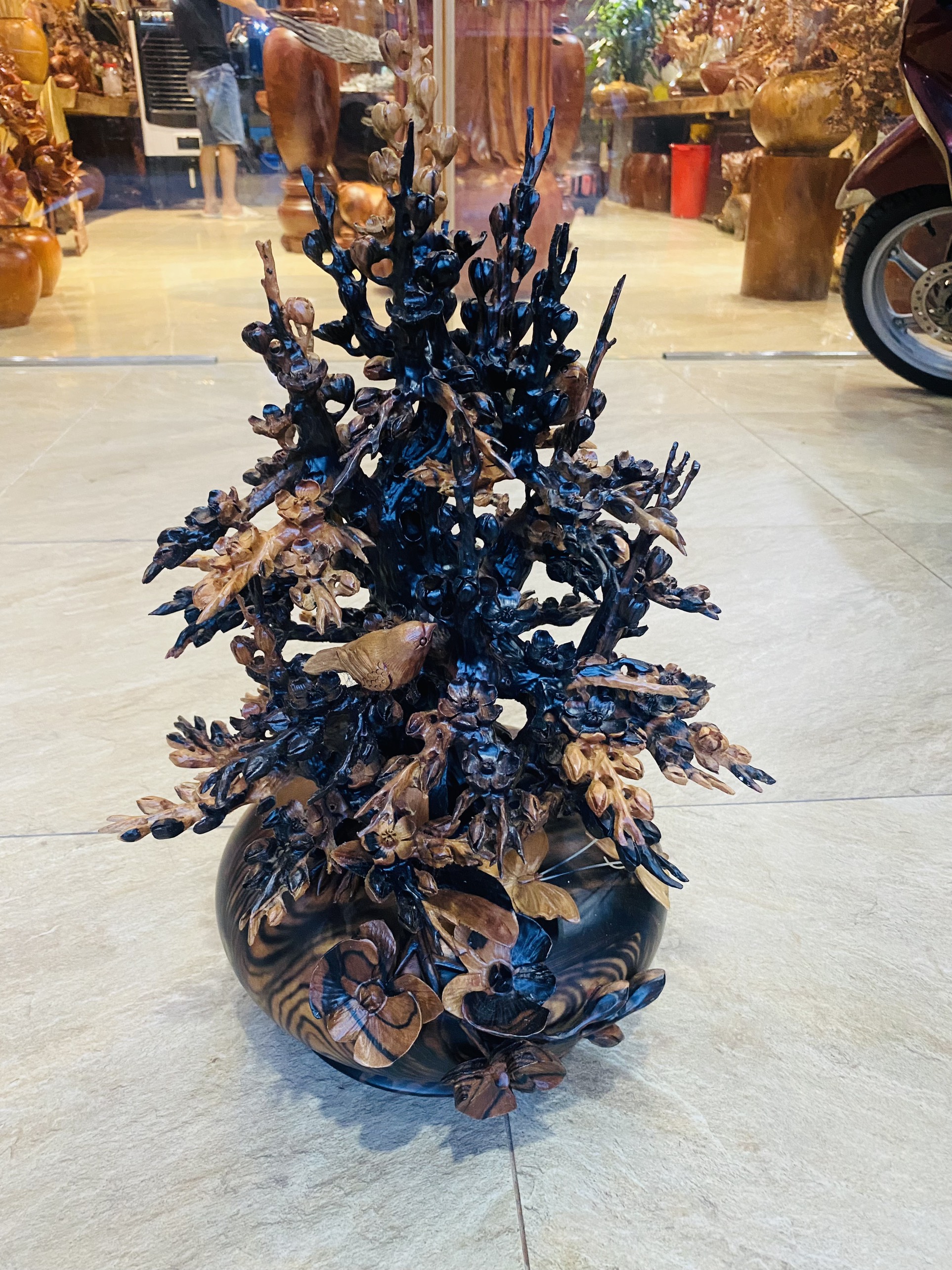 _ Bình hoa mai phú quý  trang trí phong thủy được làm bằng chất liệu gỗ mun hoa tự nhiên 100%
