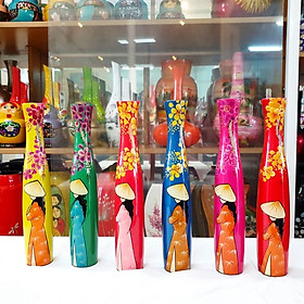 Bình sơn mài cao cấp hình cô gái Việt Nam, kích thước 30x6x6 cm