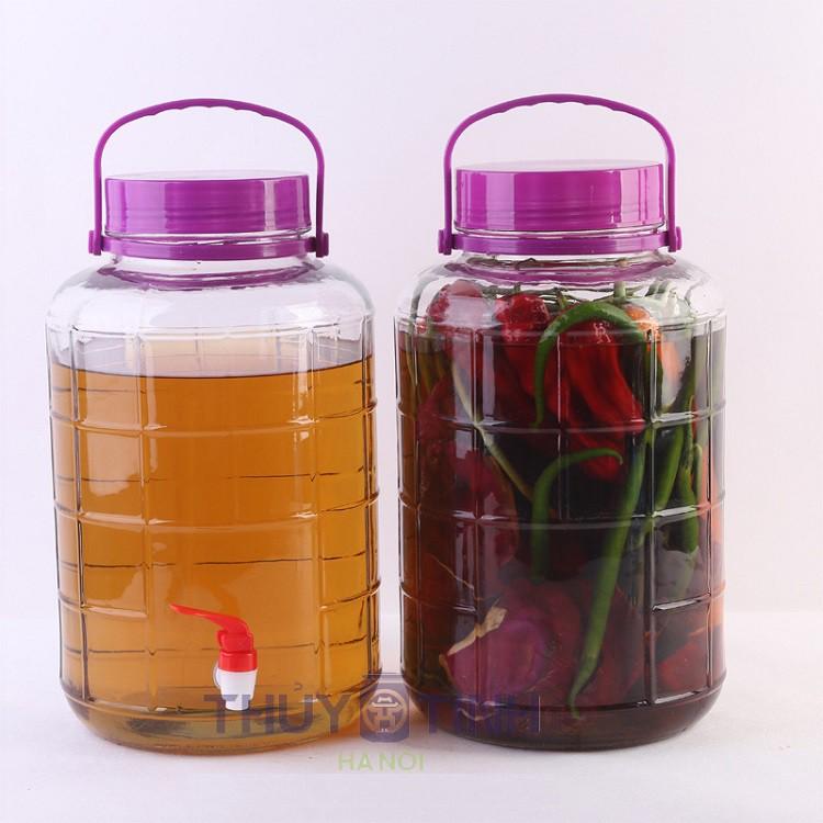 • Bình thủy tinh đựng, ngâm rượu có quai xách nắp tím mua ở đâu? Đó là câu hỏi tưởng dễ mà lại khó. Bình ngâm rượu loại này khá phổ thông, nhưng nhược điểm lớn nhất là khó vận chuyển do kích thước bình lớn.