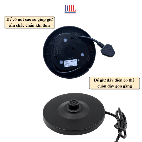 - Đế xoay 360 độ, dễ dàng sử dụng Đặc biệt, bình đun với thiết kế đế xoay 360 độ, nên bạn chỉ cần cho nước vào bình nước sau đó đặt vào đế rồi ấn nút và cắm điện chỉ trong vài phút, bạn đã có được một bình nước nóng vô cùng nhanh chóng.