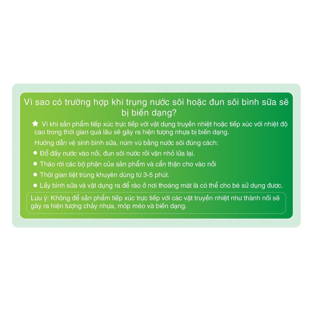 " - Chịu nhiệt: Chất liệu thủy tình thiết kế tự nhiên chịu nhiệt, giúp bạn có thể bảo quản sữa trong ngăn đông tủ lạnh, hâm nóng, & cả tiệt trùng. - Bé dễ