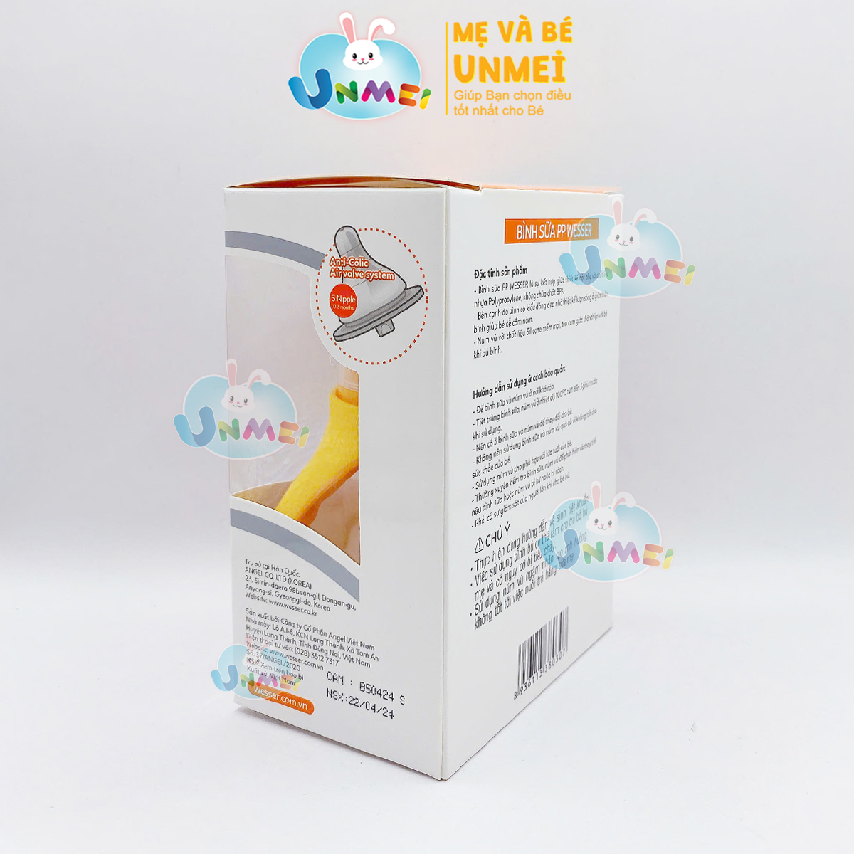 Sử dụng núm vú Wesser cổ hẹp. Có 4 Size : S,M,L,+