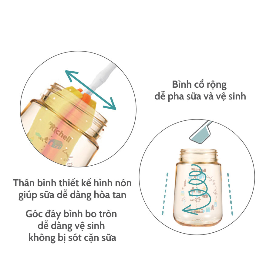 Bình cổ rộng, dễ pha sữa và vệ sinh.