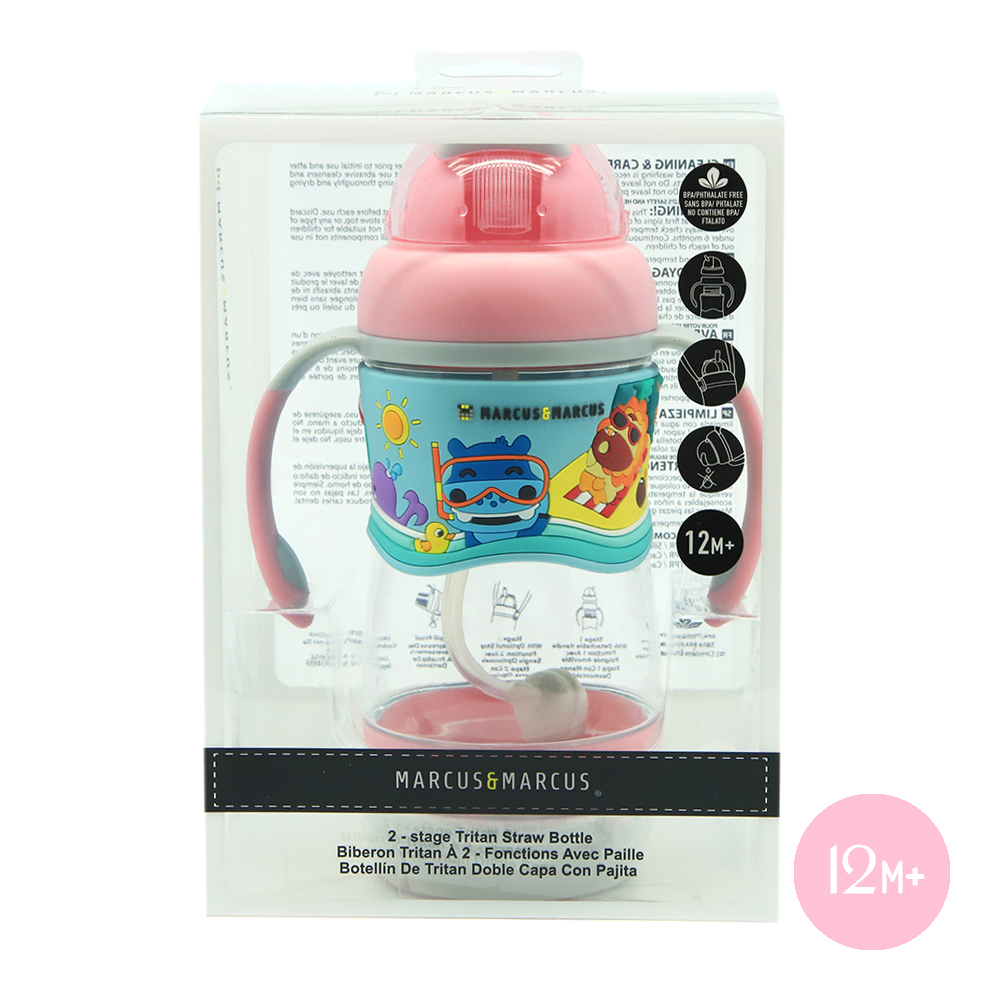 Bình uống nước có ống hút Tritan 2-Stage cho bé Marcus & Marcus, từ 12 tháng – Hồng