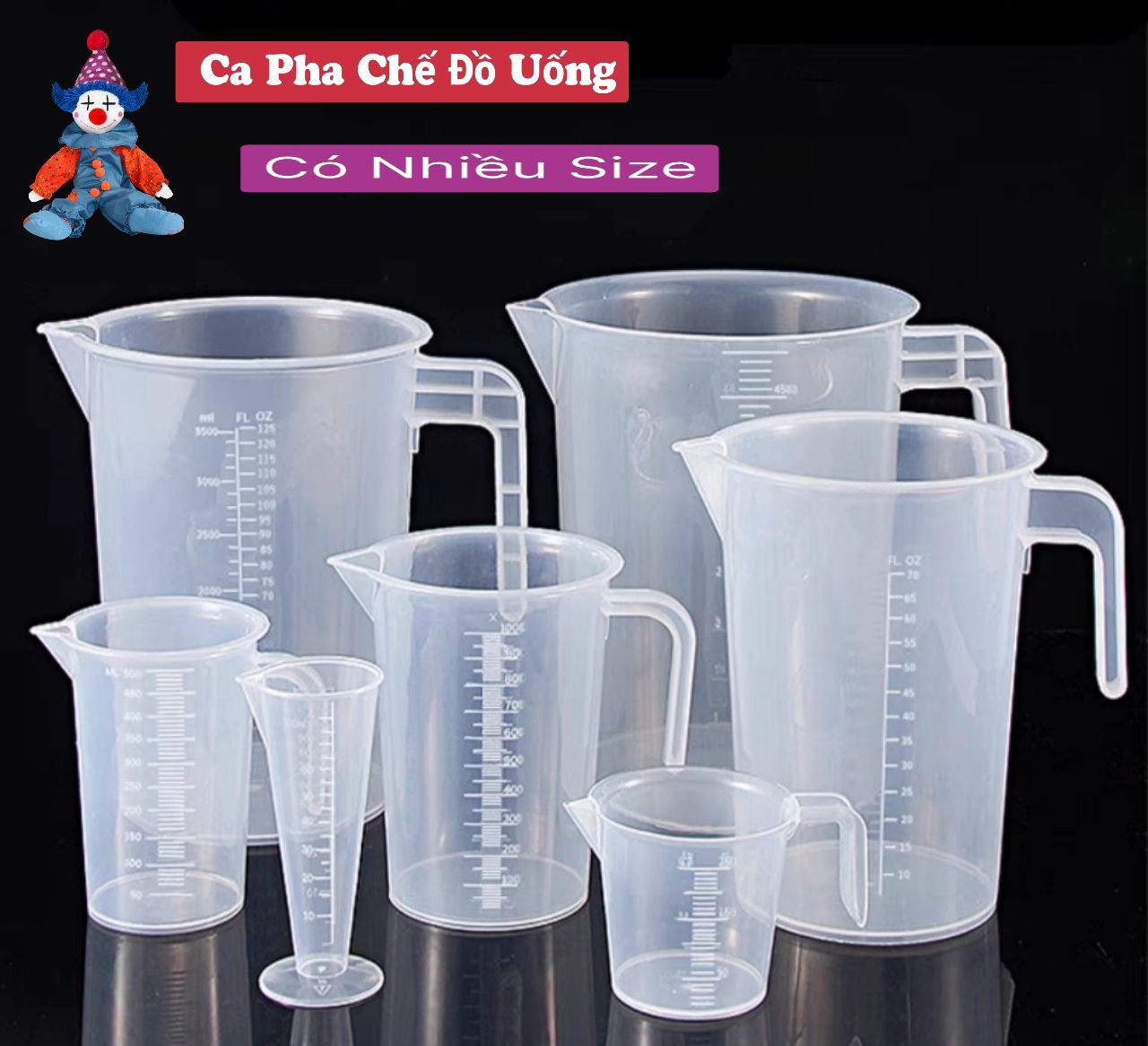 {Đủ Size} Ca Đong Nhựa Pp Trong Suốt Có Vạch Chia Định Lượng Chịu Nhiệt Độ Cao