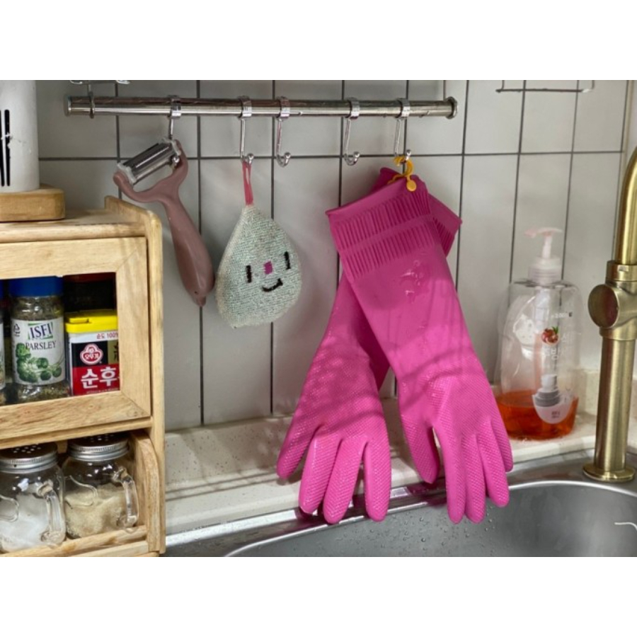 Mua tại Tiktok[COMBO2] Bộ 2 đôi Găng tay cao su rửa chén nhà bếp xuất Hàn Quốc siêu dai có móc treo L-38cm