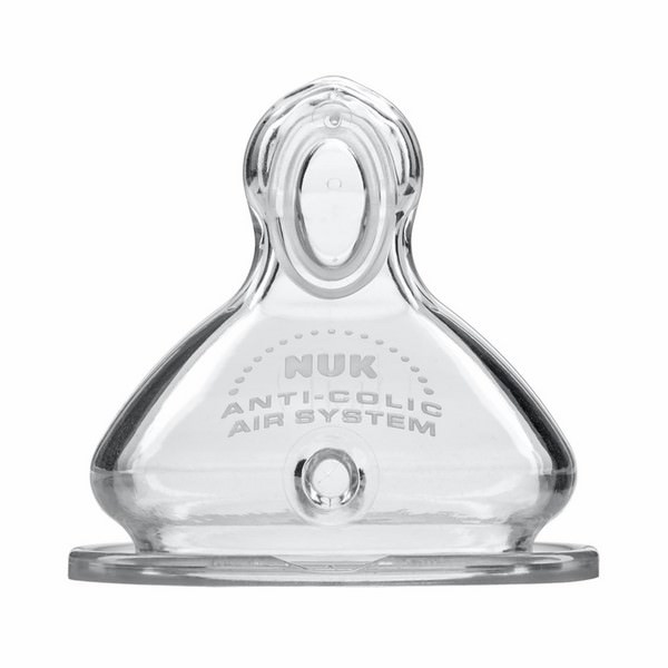Mua tại Tiktok- Bộ 2 Núm Ti Silicone S1 Nuk NU66057 (Size L) với thiết kế lỗ tiết sữa ở mặt trên, sữa sẽ được đưa lên vòm họng và hòa cùng với enzyme nước bọt trước khi nuốt để trẻ dễ tiêu hóa, tránh bị sặc do sữa đi thẳng vào họng.