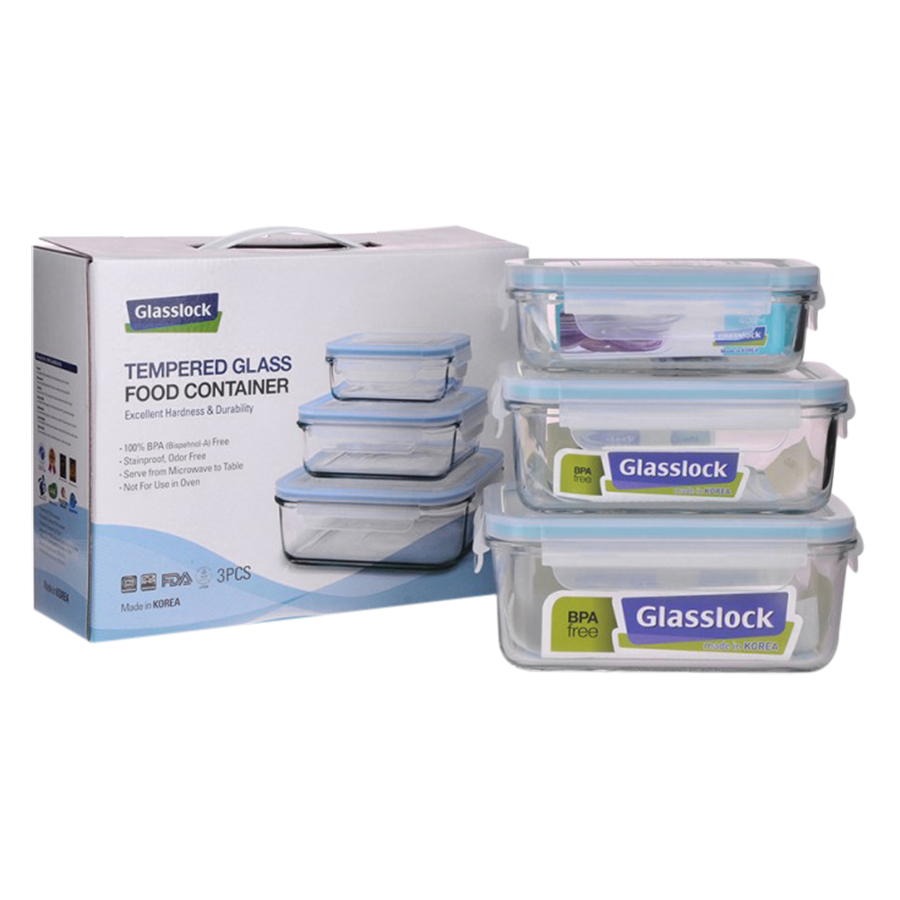 ✨Bộ 3 Hộp Thủy Tinh Hình Chữ Nhật Glasslock GL1044 (400 + 695 + 1090 ml)