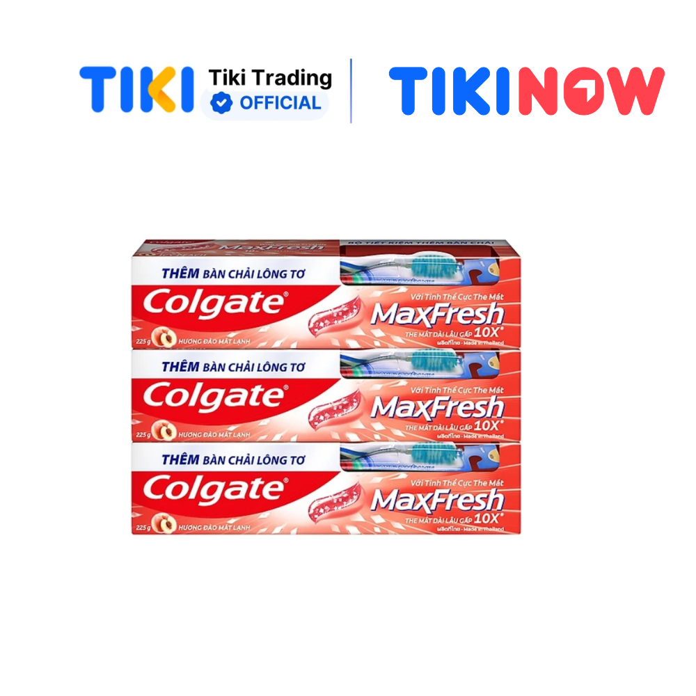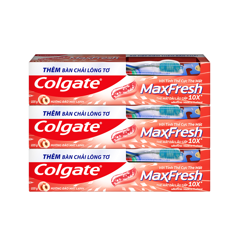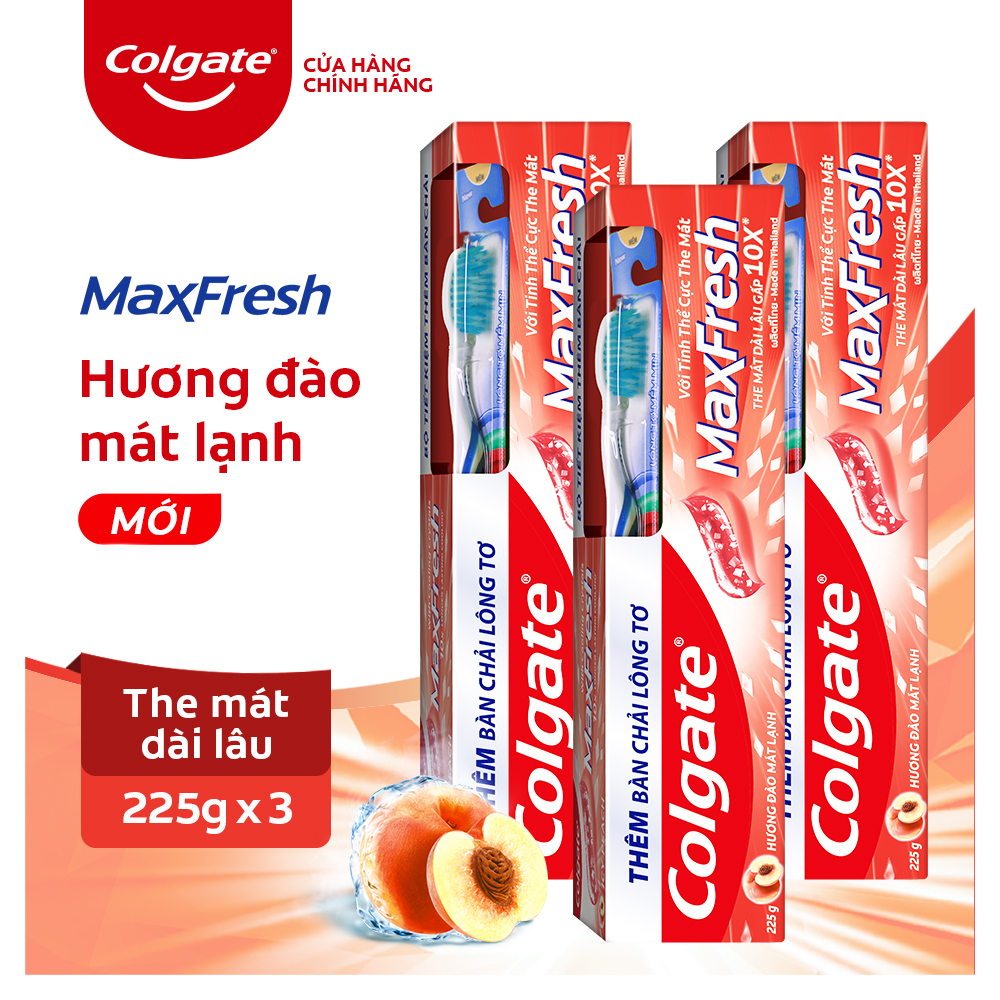 ✨Bộ 3 Kem đánh răng Colgate MaxFresh Hương Đào Mát Lạnh 225g tặng kèm bàn chải