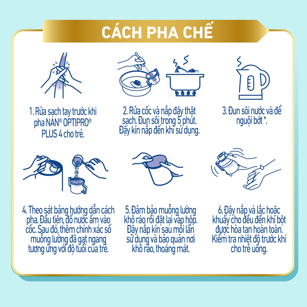 - Rửa sạch tay trước khi pha NAN OPTIPRO PLUS cho trẻ