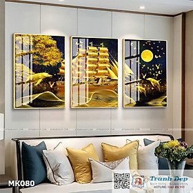 ✨Bộ 3 tranh mica cao cấp Cá heo, thuyền và biển - MK080