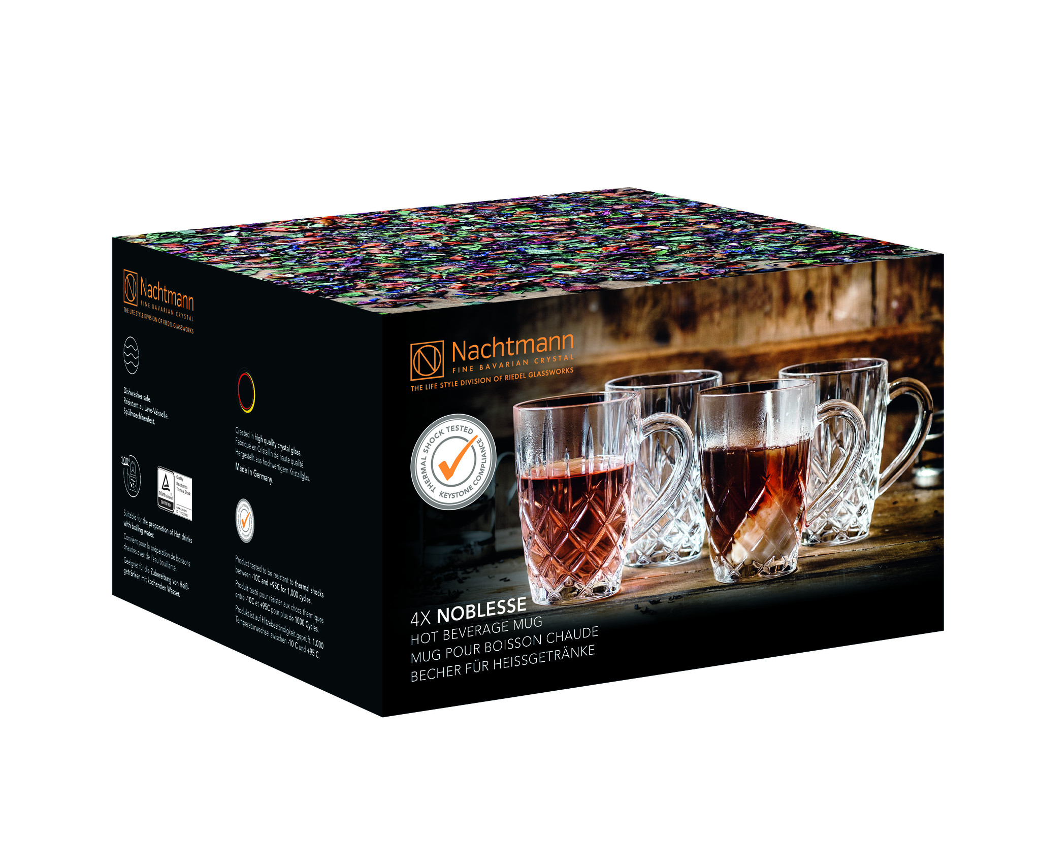 Bộ sưu tập Đồ uống nóng của Nachtmann là những chiếc cốc sang trọng và các vật dụng phục vụ khác được làm từ pha lê không chì trong suốt và bền chất lượng cao. Các
