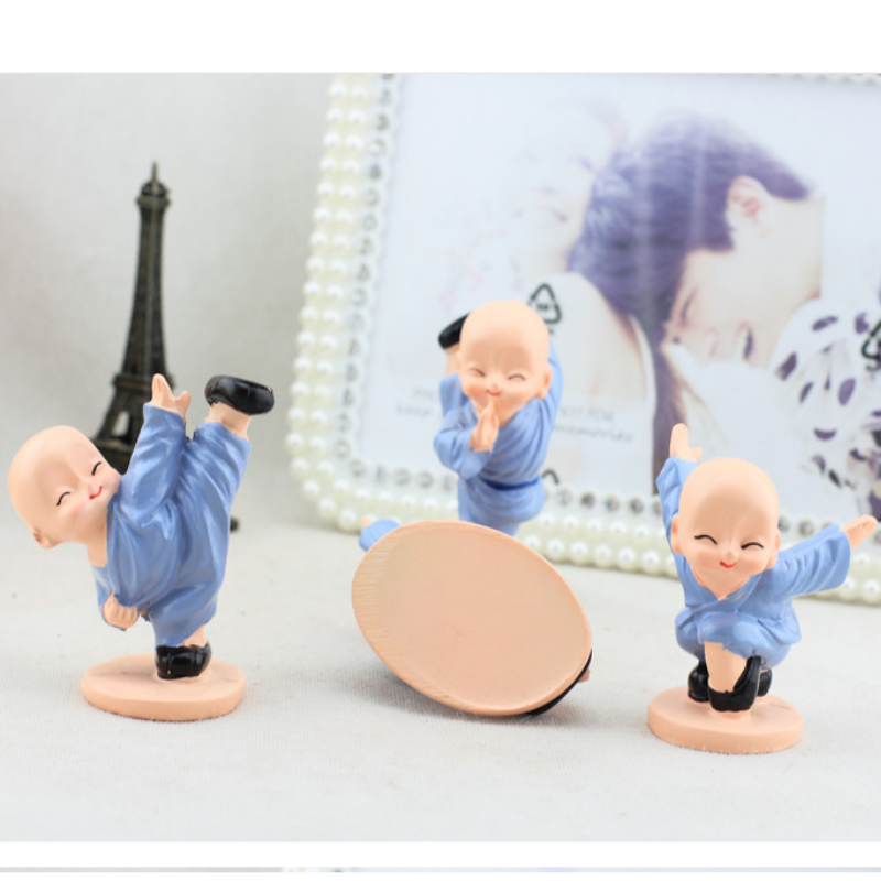 Hình ảnh Những chú tiểu sống ở chùa gắn liền một quan niệm là phải sống tốt, sống hữu ích và đem niềm vui đến cho mọi người. Những chú tiểu là những chiến sĩ dũng cảm nhất, họ đã từ bỏ tất cả để tìm đến con đường đạo. Các chú tiểu rất thanh thản và bình yên về tâm hồn. Vì vậy, trên khuôn mặt các chú luôn ẩn chứa sự hồn nhiên, trong sáng và an lạc. Cuộc sống hành điệu không đơn giản chút nào. Đôi lúc chúng ta chợt nghĩ ra rằng khó khăn, gian khổ mới giúp chúng ta thành công và trưởng thành. Thời gian hành điệu, làm chú tiểu là thời gian thực tập tu, đó là những bước chân chập chững đầu tiên vào đạo. Và đó cũng là nấc thang căn bản đầu tiên để chúng ta có thể trở thành một người tu sĩ tốt, hoàn thiện. Bộ sản phẩm gồm bốn chú tiểu Cách sử dụng: trang trí ô tô (có đế dán), bàn làm việc, nhà cử