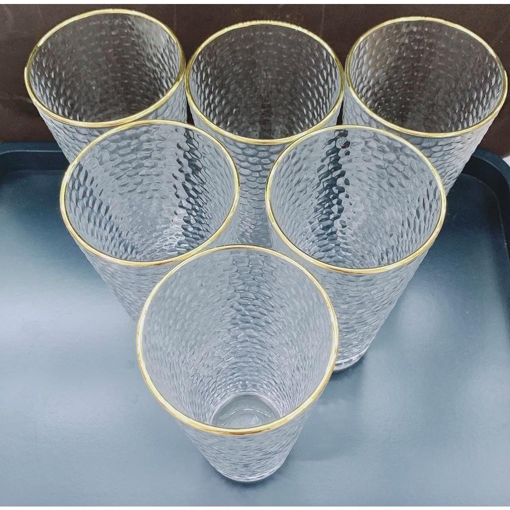 ✨Bộ 6 cốc loe cao thấp thủy tinh viền vàng vân sần 350ml