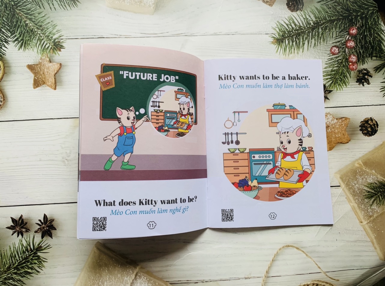 Đây là bộ sách song ngữ thú vị gồm những câu đố, câu hỏi, từ vựng đơn giản bằng tiếng Anh lẫn tiếng Việt. Với màu sắc sặc sỡ, sống động, hình minh họa hóm hỉnh, gần gũi hệt như truyện tranh, bé sẽ không hề cảm thấy nhàm chán khi lật giở từng trang sách.