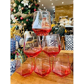 ✨Bộ 6 ly thủy tinh chịu nhiệt cao cấp dùng uống nước hoặc rượu tây vân kim cương đỏ