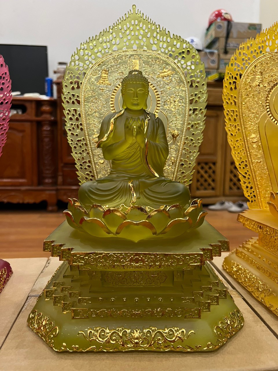 _Tượng phật adiđa được làm bằng chất liệu gỗ ngọc Am liền khối tự nhiên 100% _ Kt cao 20x10x10cm _ Tượng được chạm khắc vô cùng tỉ mỉ tinh xảo kỳ công. ĐI HẦU