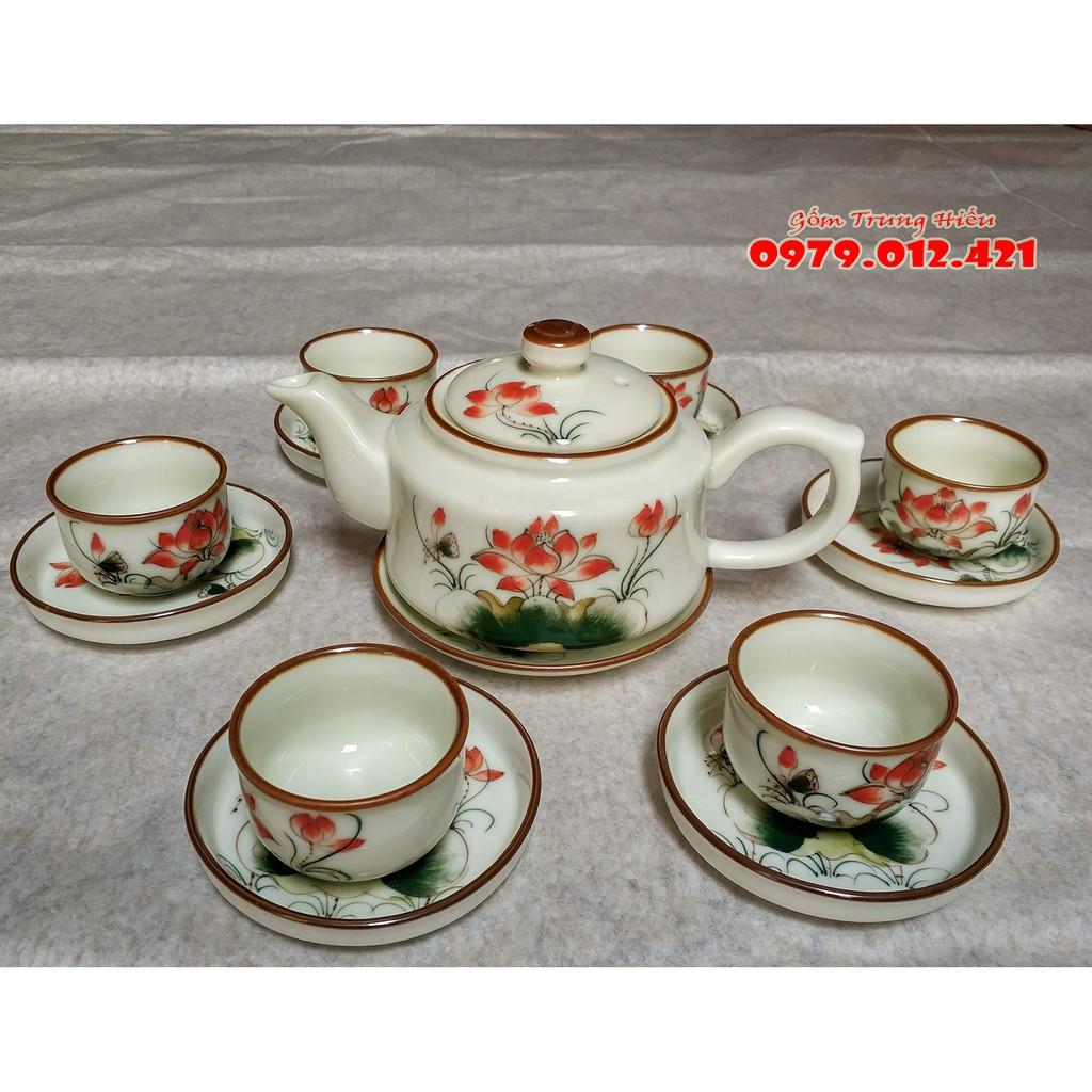 ✨Bộ ấm chén Bát Tràng họa tiết hoa sen