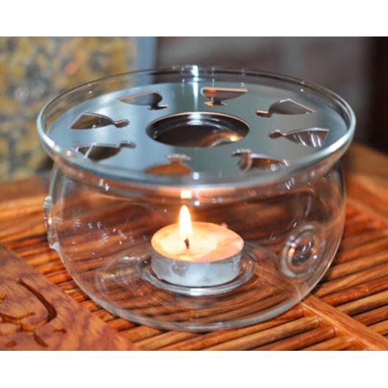 BỘ ẤM TRÀ THUỶ TINH CHỊU NHIỆT CÓ ĐẾ NẾN, BỘ ẤM CHÉN UỐNG TRÀ CAO CẤP 600ML