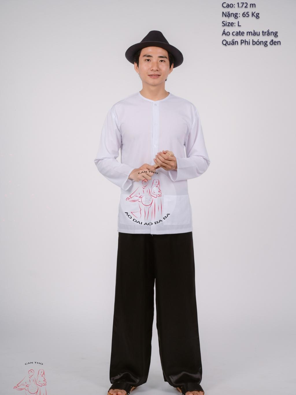 ✨Bộ áo bà ba nam phối áo cate trắng + Quần cate đen - Có bộ bà ba Bigsize
