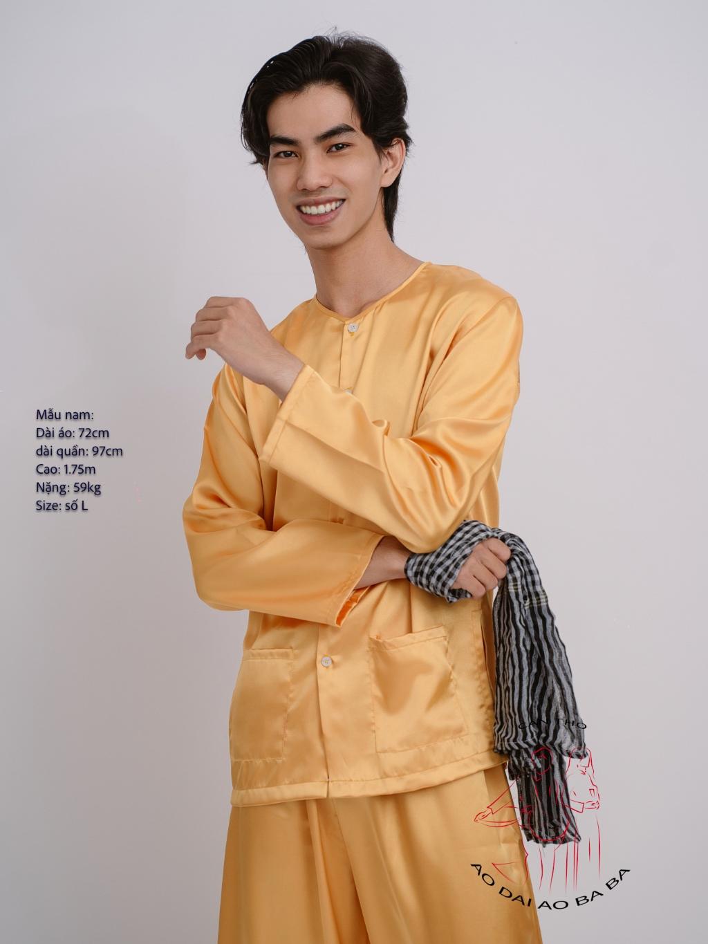 Bộ Bà Ba Nam Áo Vàng và Quần Nâu Vải Kate Mô tả chi tiết: • Chất liệu: Vải kate, thoáng mát, mềm mại và bền đẹp. • Màu sắc: Áo vàng- quần nâu đất
