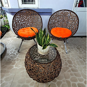 Bộ sản phẩm gồm : 01 bàn mặt kính + 02 ghế + 01 xích đu như hình Đặc biệt kèm theo bộ nệm xích đu + 02 đệm ghế chất liệu vải nhung màu