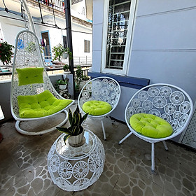 Bộ sản phẩm gồm : 01 bàn mặt kính + 02 ghế + 01 xích đu như hình