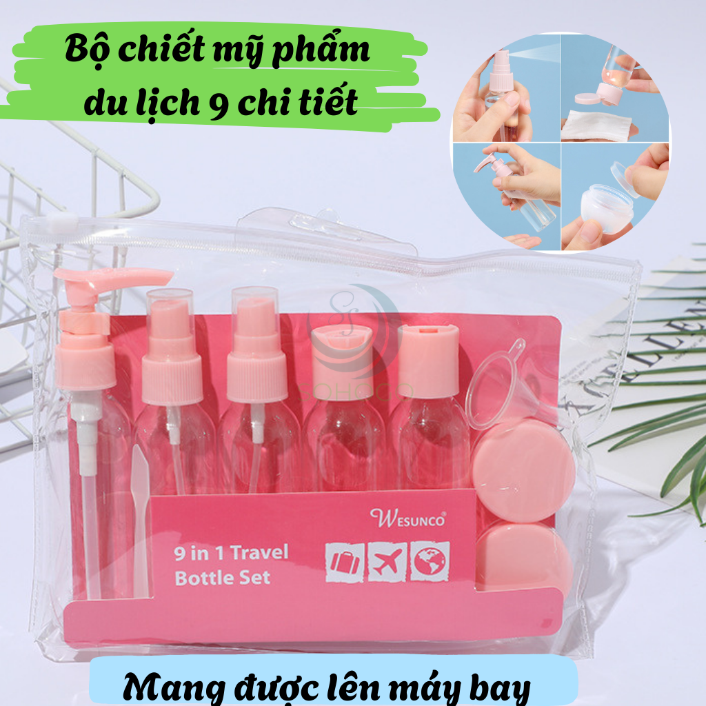 Bộ Chiết Mỹ Phẩm Du Lịch 9 Món Kèm Túi Đựng Bộ Chiết Mỹ Phẩm Du Lịch 9 Món – Gọn Nhẹ Cho Hành Trình Hoàn Hảo Dù là chuyến công tác ngắn ngày hay