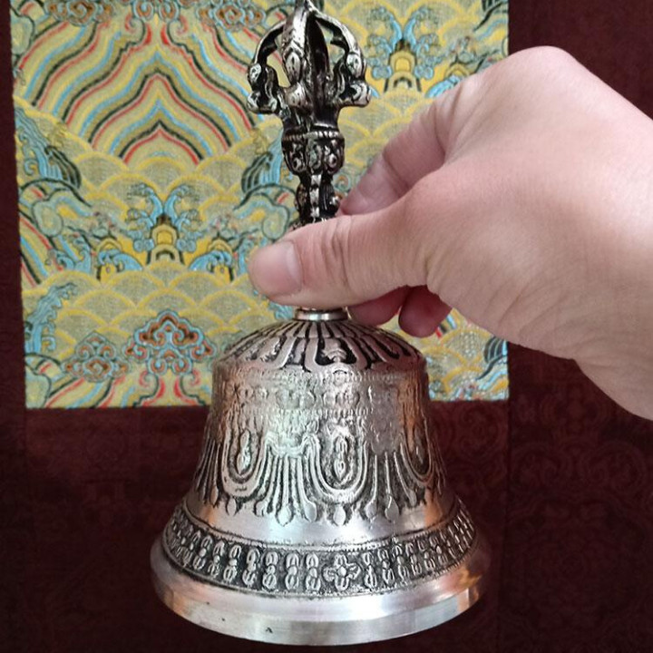 Chuông chày kim cang pháp khí mật tông bằng đồng tráng bạc cỡ lớn