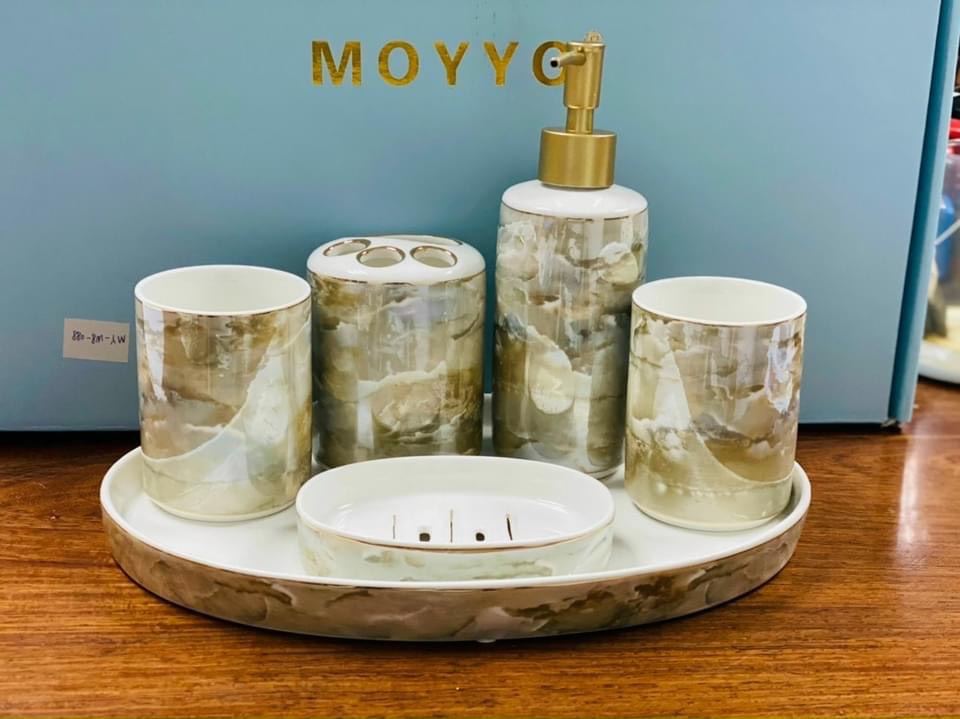 ✨BỘ ĐỒ DÙNG NHÀ TẮM 6 MÓN GỐM SỨ VÂN ĐÁ CAO CẤP - VD61