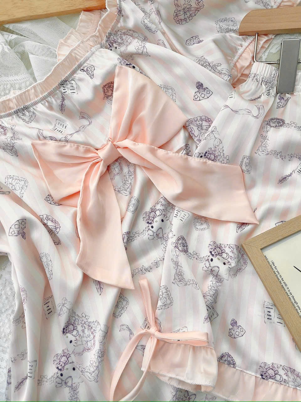 ✨Bộ Đồ Ngủ Hello Kitty Lụa Quảng Châu Cao Cấp Nơ Bèo Tiểu Thư