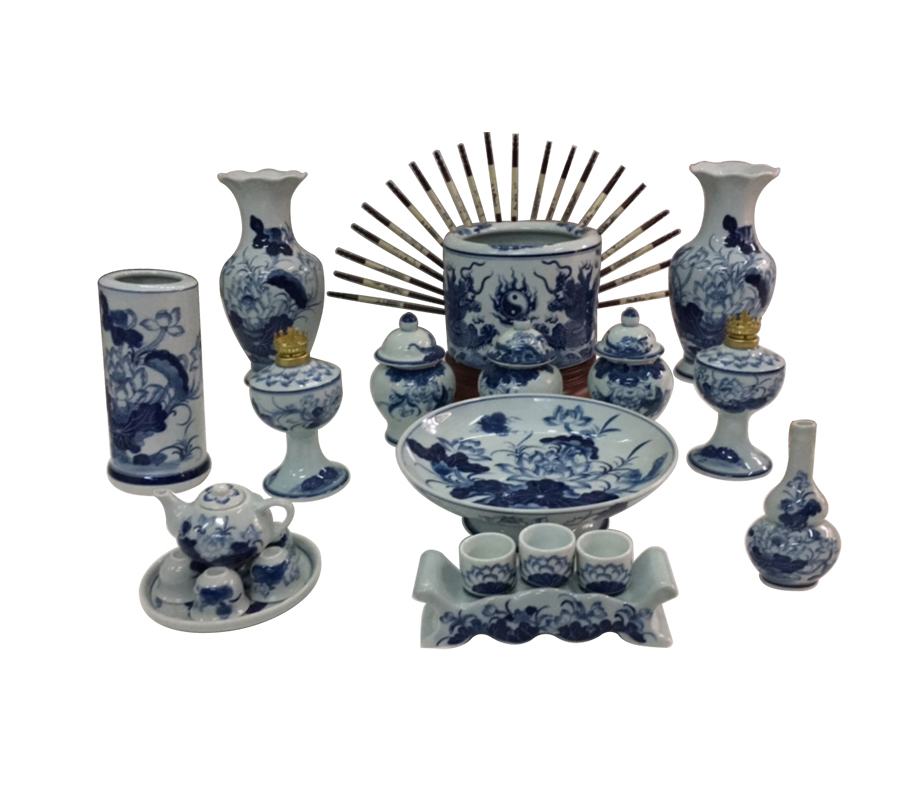 Bộ Đồ Thờ Gia Tiên Men Rong Bát Tràng Cao Cấp - Bàn Thờ Chung Cư - [ GỐM ĐẠI VIỆT - BÁT TRÀNG]