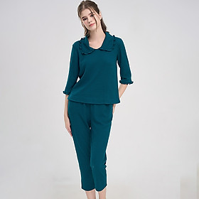 Đồ bộ mặc nhà WANNABE BDS41 đồ bộ quần dài phối áo 2 dây cúp ngực viền ren gợn sóng mang lại vẻ gọn gàng nữ tính Đồ bộ mặc nhà phi lụa cao cấp