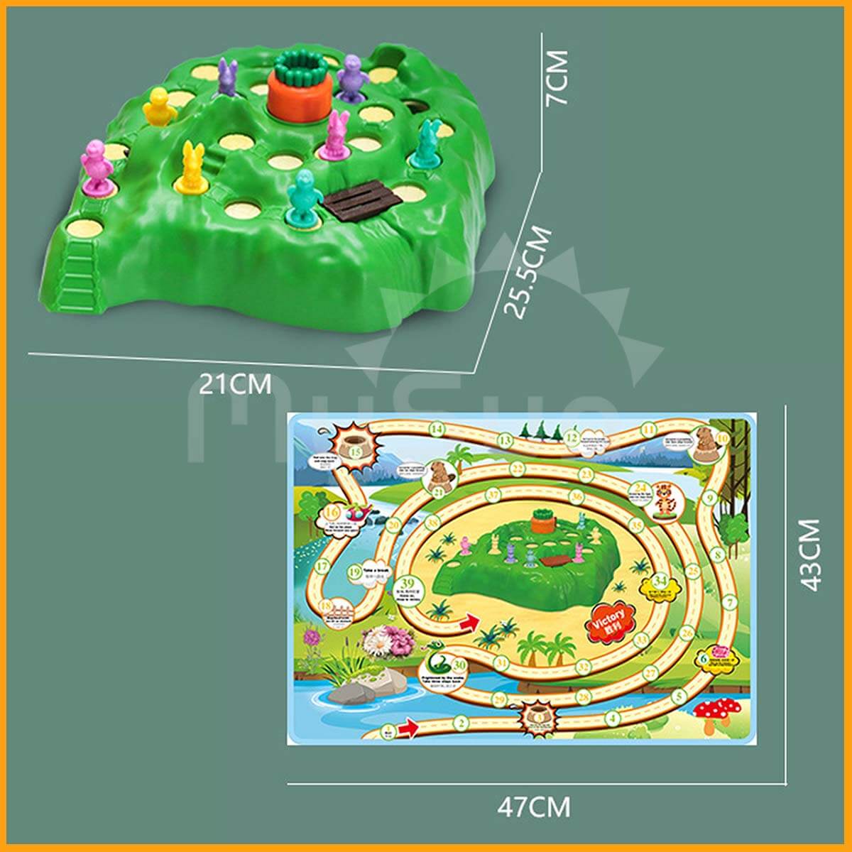 - Bộ đồ chơi thi chạy rùa và thỏ sản xuất bằng nhựa cao cấp. Hình ảnh và nét vẽ con vật sống động.