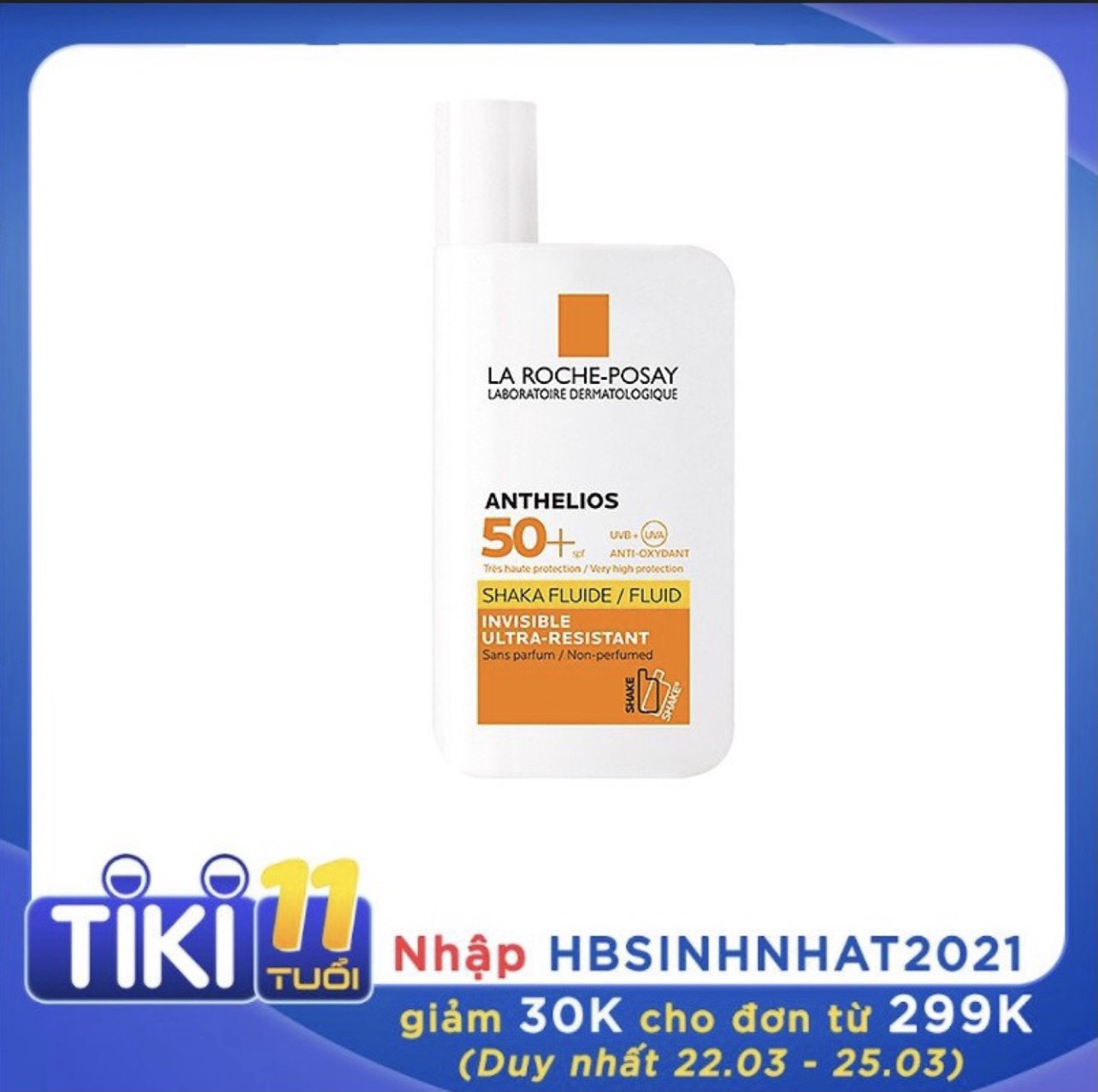 Mua tại TiktokThông tin sản phẩm: Kem chống nắng dạng sữa lỏng nhẹ không nhờn rít La Roche-Posay Anthelios Shaka Fluid SPF 50+ 50ml là dòng sản phẩm có khả năng chống nắng phổ rộng, bảo vệ da toàn diện trước tác hại từ tia UVA/UVB. Chất kem dạng sữa với công nghệ Intelimer giúp kháng trôi tối đa với kết cấu lỏng nhẹ, thẩm thấu nhanh, không nhờn rít, không để lại vệt trắng da. Sản phẩm an toàn với mọi loại da, đặc biệt được chuyên gia khuyên dùng cho da nhạy cảm với ánh nắng do cơ địa hoặc tác nhân bên ngoài. Loại sản phẩm: Kem chống nắng cho da mặt dạng sữa không nhờn rít Thành phần: