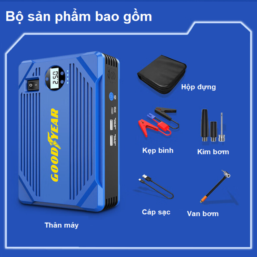 Bộ kích điện ô tô, kiêm pin sạc dự phòng và bơm lốp thương hiệu Mỹ cao cấp Goodyear GY-2626 - Goodyear là một trong những công ty sản xuất lốp xe lớn nhất thế