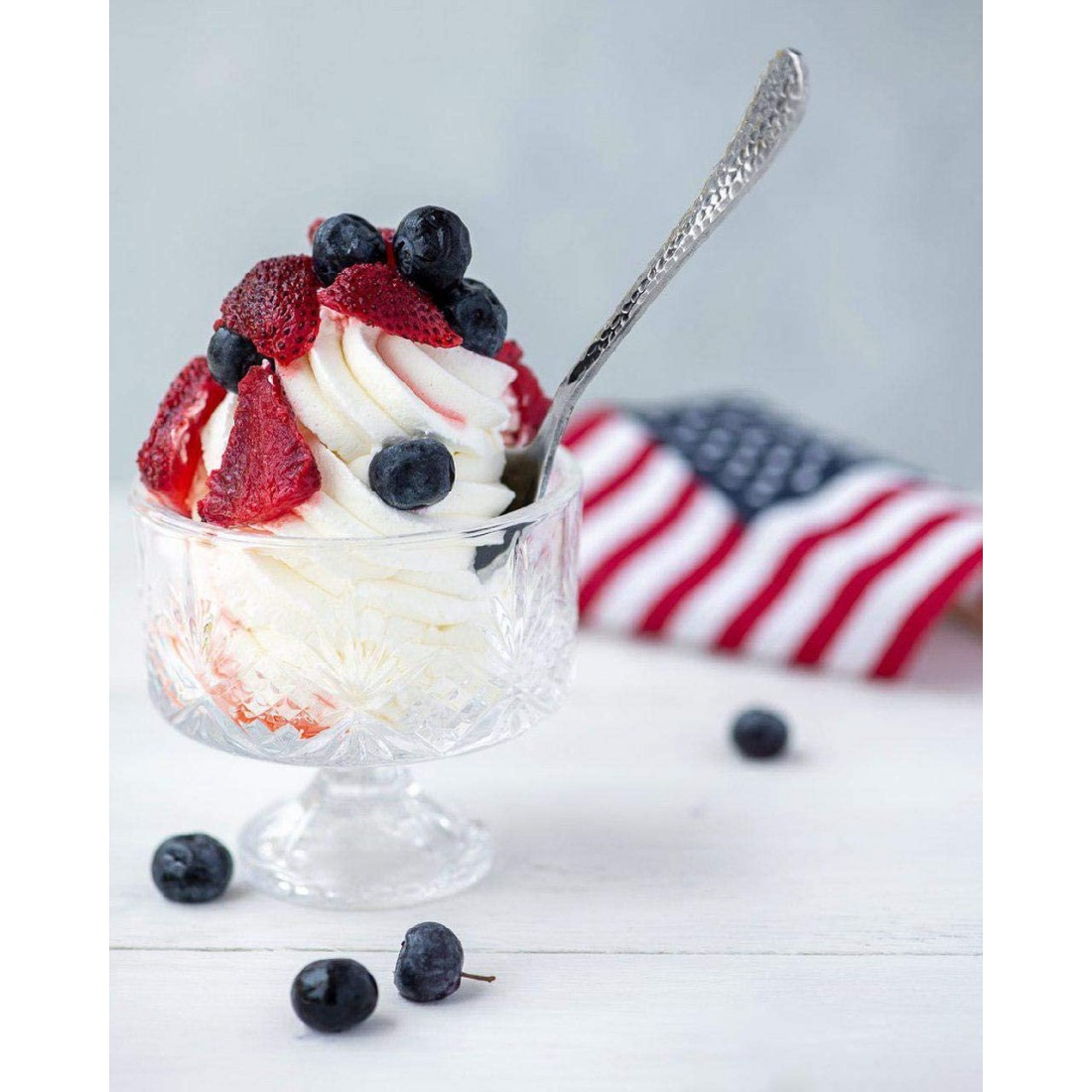 8 ly đi kèm 8 thìa ăn kem với chất liệu thép không gỉ, sáng bóng .