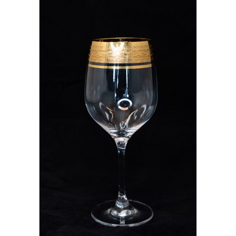 Ly rượu vang viền miệng mạ vàng, hoa văn chi tiết, tinh tế tạo điểm nhấn sang trọng và độc đáo cho việc thưởng thức đồ uống cũng như tạo nên vẻ sang trọng cho không gian, kiến trúc nội thất.