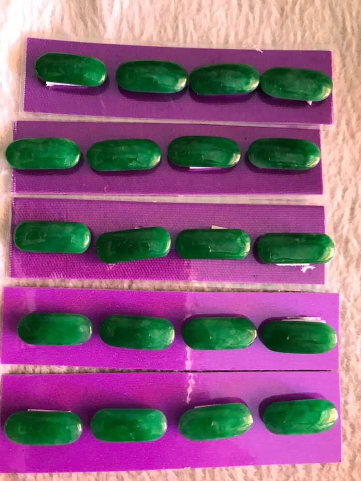 Bộ 5 đồng tiền đá cẩm thạch tự nhiên xanh ngọc đậm đều đẹp Nữ Phối vòng tay,mặt dây chuyền vàng đeo cực kỳ xinh xắn ạ Size hạt 9mm x dầy 3,8mm x lỗ