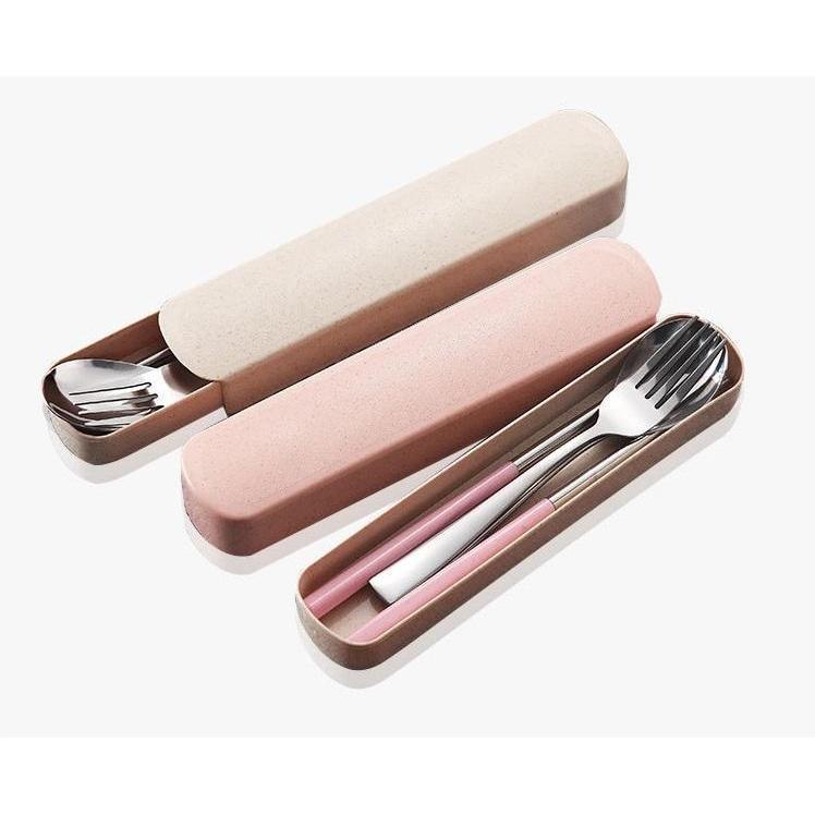 ✨Bộ Muỗng Đũa Nĩa Inox Lúa Mạch Có Hộp Đựng Tiện Lợi