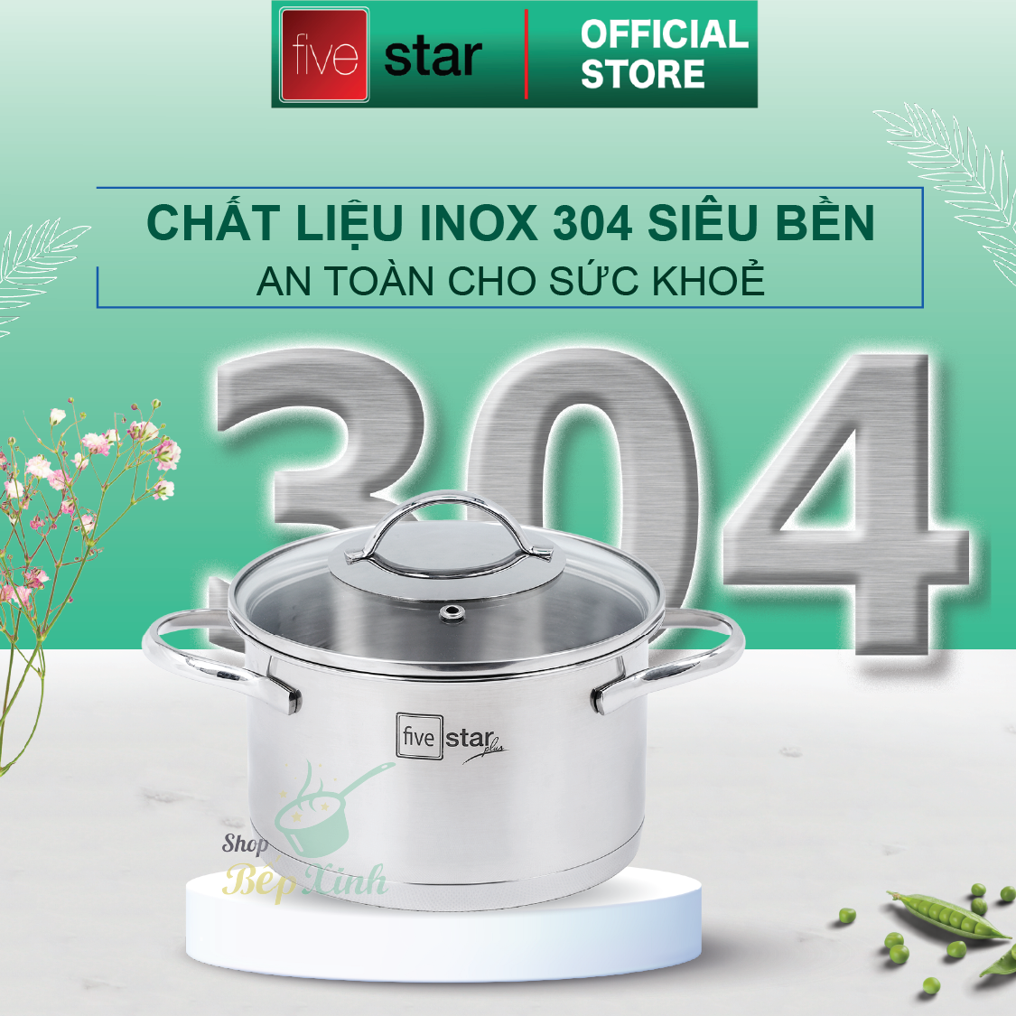 Bộ nồi chảo xửng hấp 3 Đáy Inox 430 cao cấp Fivestar Standard bếp từ nắp kính , tặng 1 vá canh Bộ nồi inox có 9 món gồm : +Quánh có đường kính
