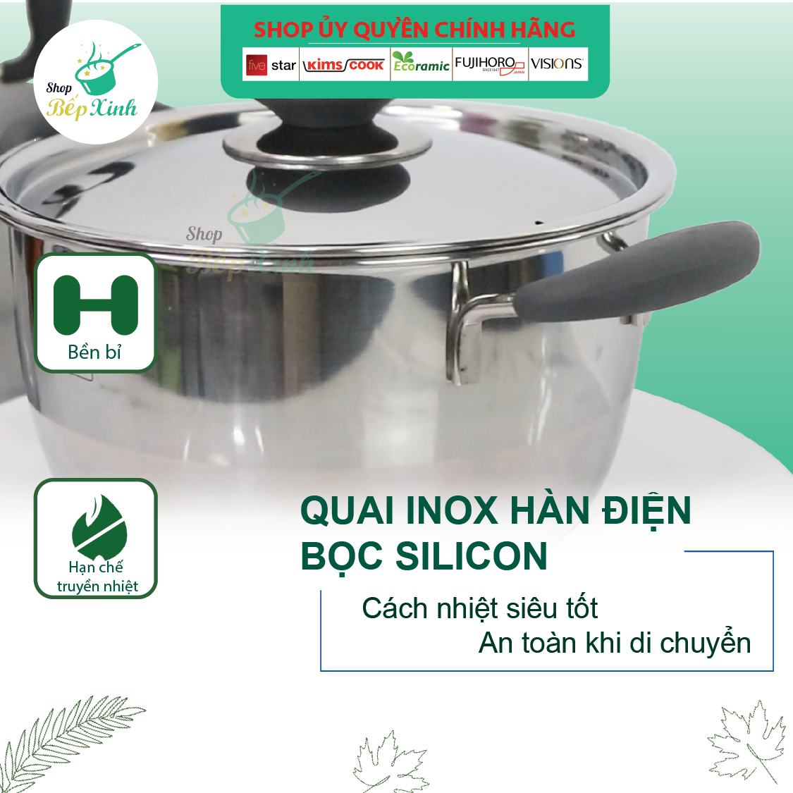 Bộ nồi gồm có : +1 Nồi Fivestar đường kính 16cm, chiều cao 9cm + nắp inox quai silicon + 1 Nồi Fivestar đường kính 20cm, chiều cao 12cm + nắp inox quai silicon +