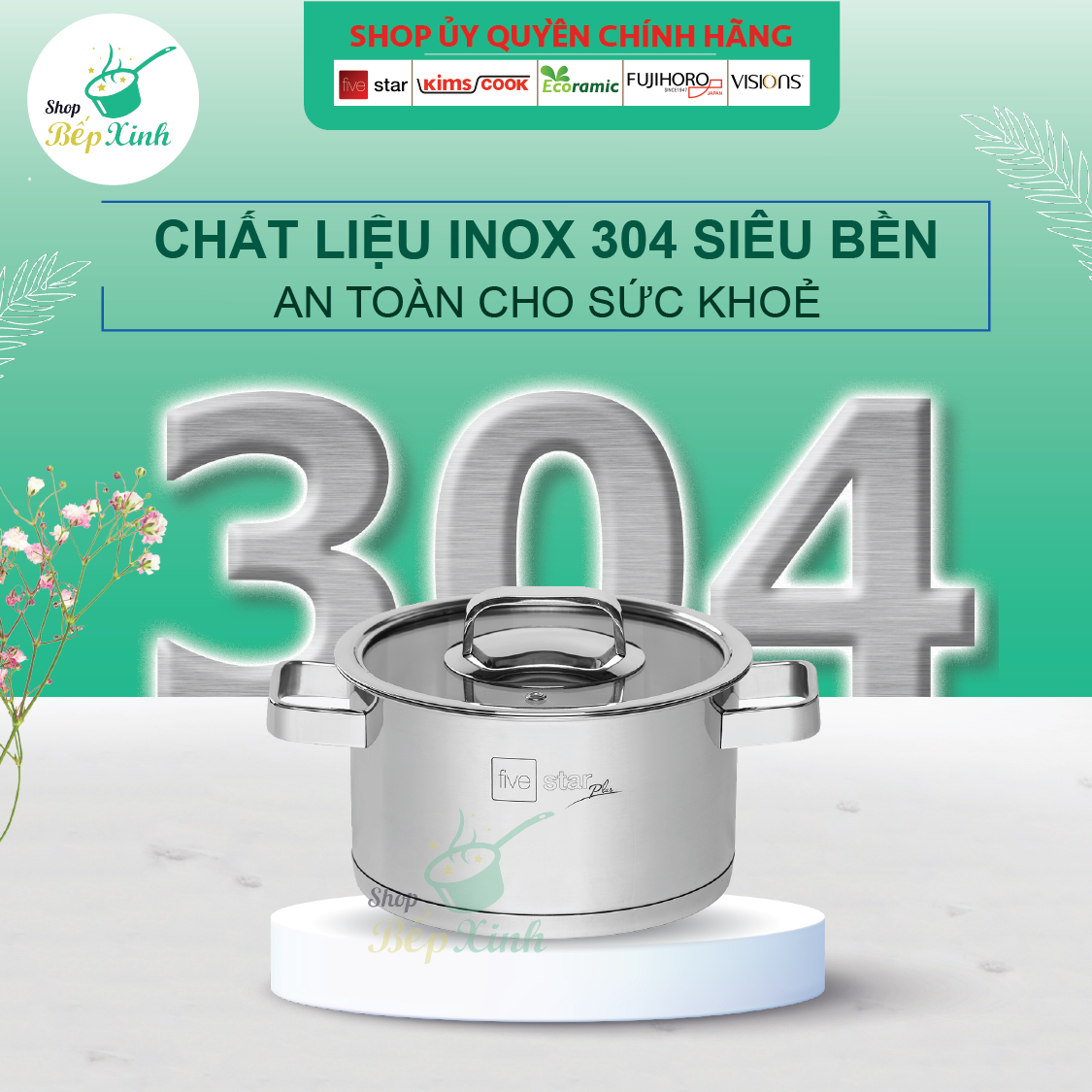 ✨Bộ nồi inox 304 bếp từ 3 đáy và xửng hấp inox 24cm Fivestar nắp kính tặng 1 SẠN INOX