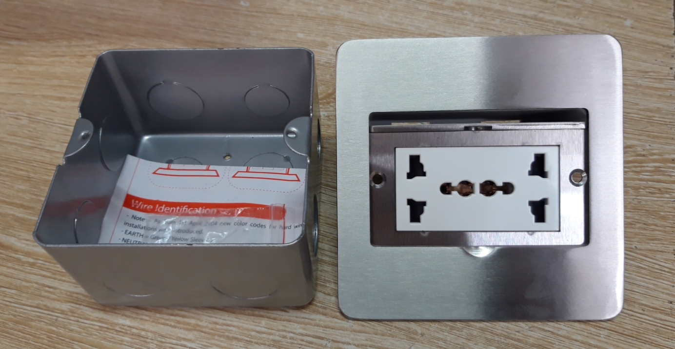 - Ổ cắm âm sàn sử dụng cơ cấu bật nắp dạng pop-up. Người dùng có thể bật nắp khi có nhu cầu sử dụng, và đậy lại khi không còn nhu cầu.