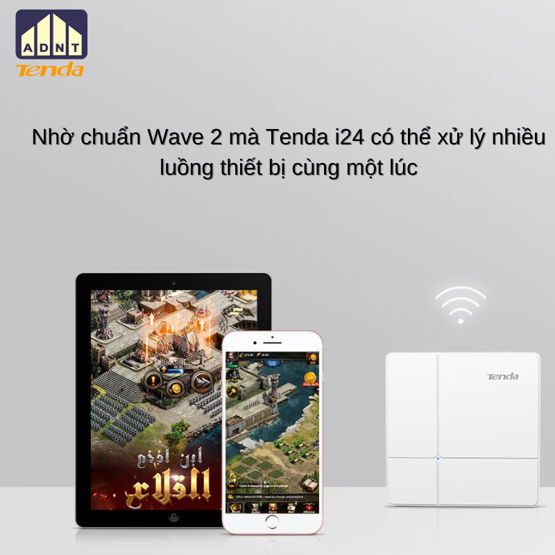 -Nhờ chuẩn Wave 2 mà Tenda i24 có thể xử lý nhiều luồng thiết bị cùng một lúc, giúp bạn tận hưởng tốc độ cao hơn, mang lại trải nghiệm tốt hơn.