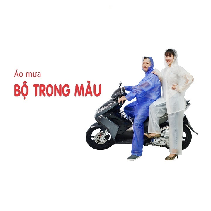 Bộ áo đi mưa trong màu là dòng sản phẩm tiện ích giúp người mặc thuận tiện hơn trong những ngày mưa bão. Bộ áo mưa được thiết kế với chất liệu PVC trong mờ, nhẹ nhàng , thao tác mặc rất nhanh gọn giúp che phủ toàn bộ lớp quần áo đang mặc, bạn sẽ tránh được nước mưa từ mọi phía (trước, sau, trái phải)