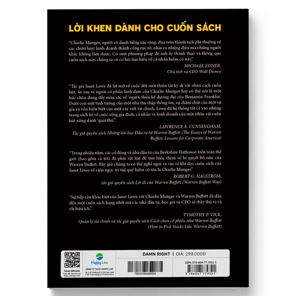 Từng trang sách trong cuốn Damn right! – Vén màn bí ẩn về tỷ phú Charlie Munger cánh tay phải của Warren Buffett sẽ giúp bạn biến tư duy thông thường thành bộ tư duy trí tuệ tỷ đô để gặt hái nhiều quả ngọt trên thị trường tài chính.